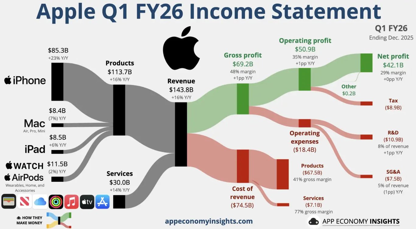 AAPL34 segue entregando crescimento e margens elevadas. Veja a análise dos resultados da Apple no 1T26 e o que esperar da ação