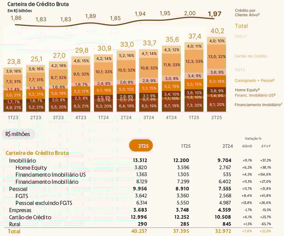 Por fim, no setor financeiro, vale destacar que a carteira de crédito imobiliário do Inter (INBR32) é bastante relevante no todo e a empresa tende a ser a maior beneficiada entre os bancos pelas mudanças no financiamento imobiliário anunciadas pelo governo. Assim como já havia sido a maior beneficiada com a criação do consignado privado, dado o perfil da sua base e a não canibalização do produto com o resto de seu portfólio.