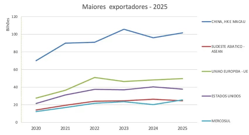 No acordo Mercosul-UE, o Brasil é o ator central. É o maior país do bloco, o maior exportador e o principal beneficiário potencial. A União Europeia já é hoje o segundo maior parceiro comercial do país, atrás apenas da China.