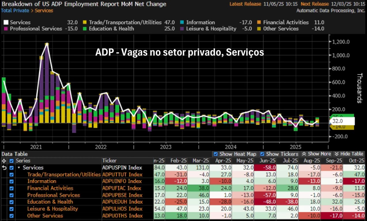 ADP de outubro mostra aumento no número de vagas de trabalho. No entanto, o dado corrobora com o processo de desaceleração