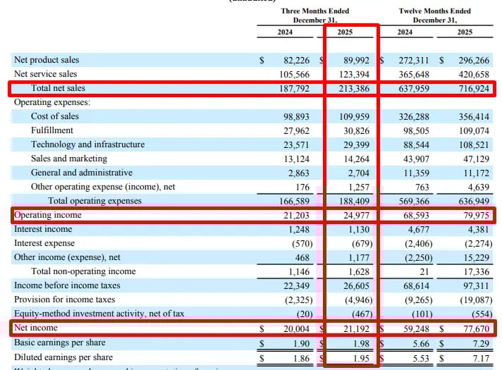 A receita líquida totalizou US$ 213,4 bilhões, crescimento de +14% a.a., superando o consenso. O lucro operacional atingiu US$ 25,0 bilhões, mesmo após a inclusão de US$ 2,4 bilhões em itens não recorrentes (disputas fiscais, acordos judiciais, custos de desligamento e impairments).