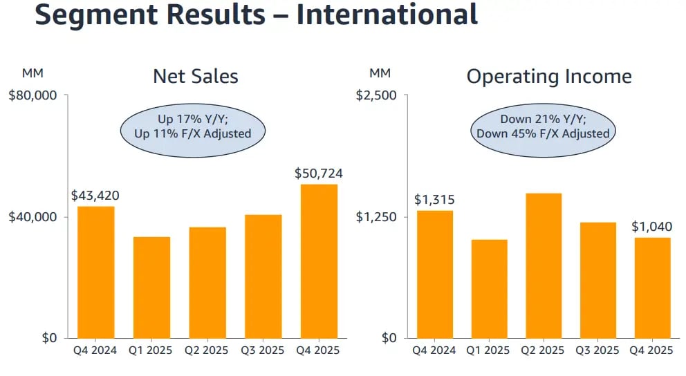 O lucro operacional do AWS foi de US$ 12,5 bilhões, com margens permanecendo na faixa dos meados de 30%, mesmo com a companhia investindo agressivamente em infraestrutura de IA. Isso reforça a resiliência estrutural do modelo de nuvem da Amazon.