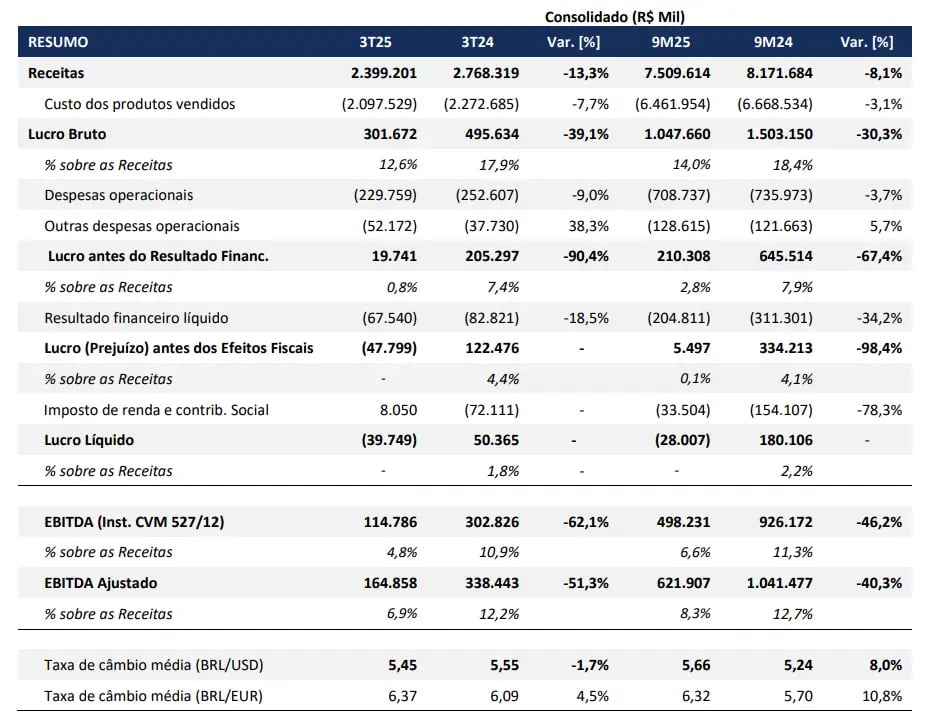 O desempenho operacional e o avanço na desalavancagem são pontos positivos, mas o elevado custo financeiro segue como principal obstáculo à expansão do lucro líquido.