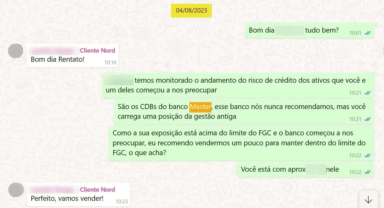 O meu objetivo hoje é explicar por que nossos clientes foram blindados desse episódio, enquanto boa parte da indústria alocava no Master em busca de comissões e incentivos comerciais.