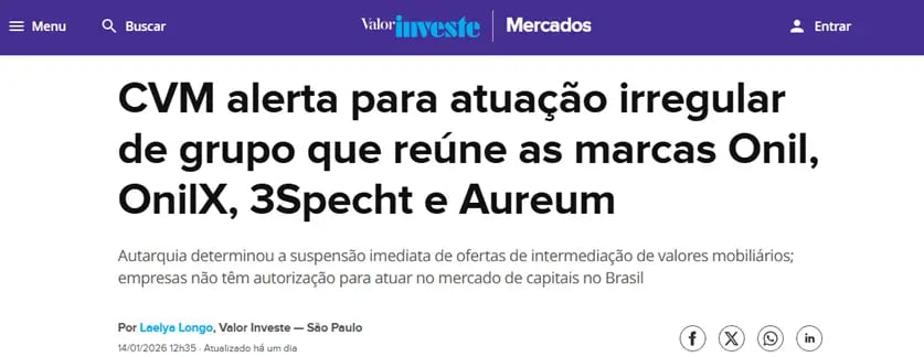 Nas últimas semanas, o mercado acompanhou, quase em sequência, três episódios que chamam atenção justamente pela proximidade temporal: o caso ainda em andamento do Banco Master, o alerta público da CVM sobre a atuação irregular do grupo Onil/OnilX e, mais recentemente, as notícias sobre atrasos de pagamento e mudanças no modelo de captação da Fictor.