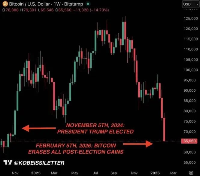 Nesta semana, o bitcoin chegou a cair abaixo dos US$ 70 mil, pela primeira vez desde novembro de 2024, marcando uma reversão rápida e relevante do movimento observado após a eleição americana.