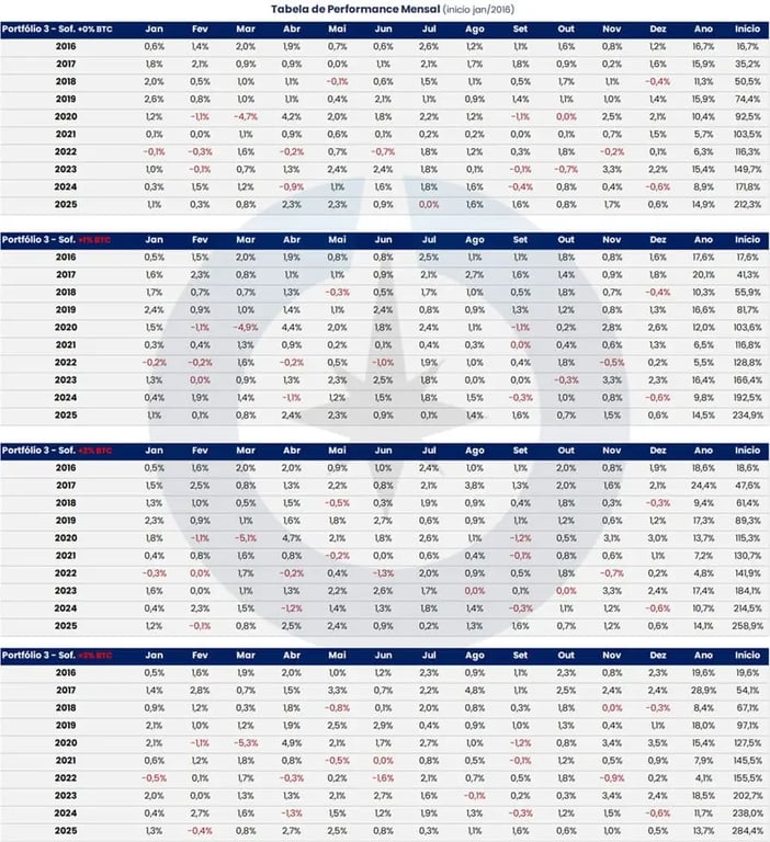 A principal conclusão é simples, mas poderosa: mesmo alocações pequenas em bitcoin tiveram um impacto desproporcionalmente positivo no resultado do portfólio. Não por magia, mas por diversificação e assimetria.