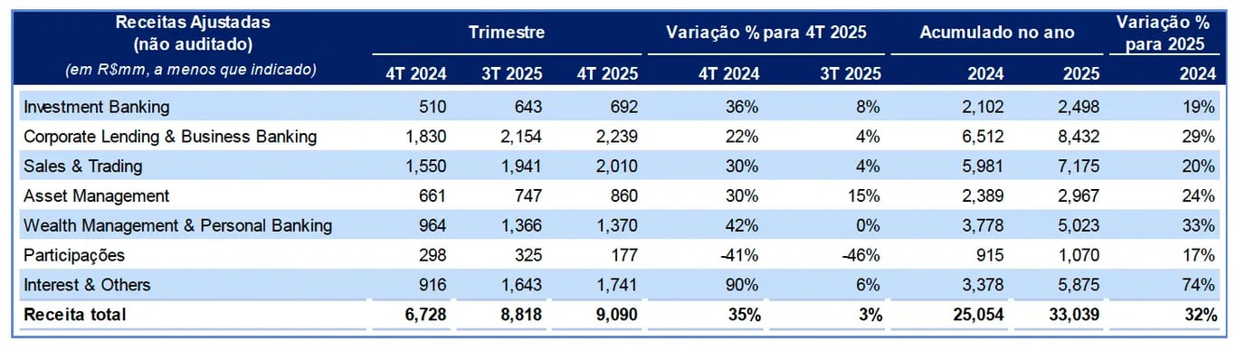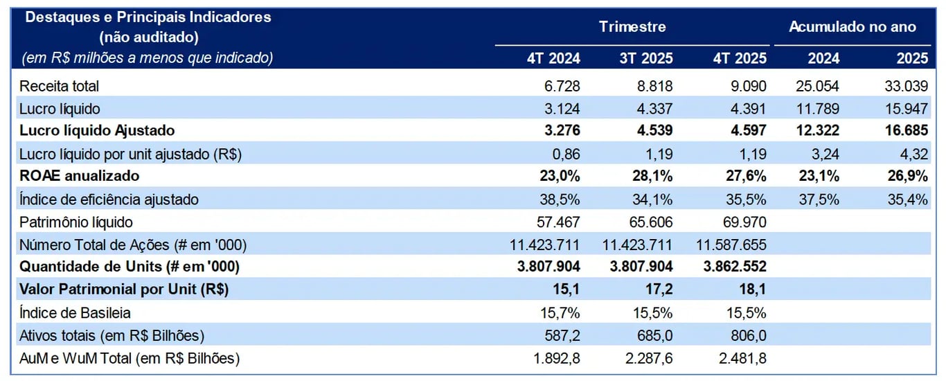 BTG Pactual entrega forte crescimento de lucro e ROE no 4T25