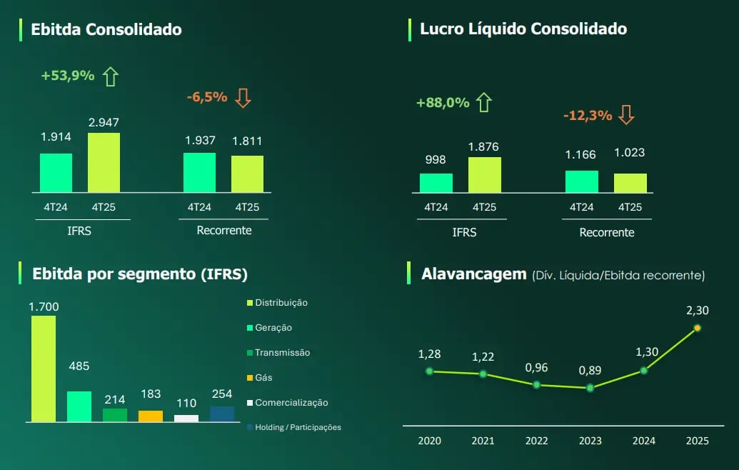Além de já ter investido sete vezes mais desde 2018, entre 2026 e 2030 estão planejados investimentos de R$43,7 bilhões, sendo R$6,7 bilhões em 2026, principalmente em seu principal segmento, distribuição de energia.
