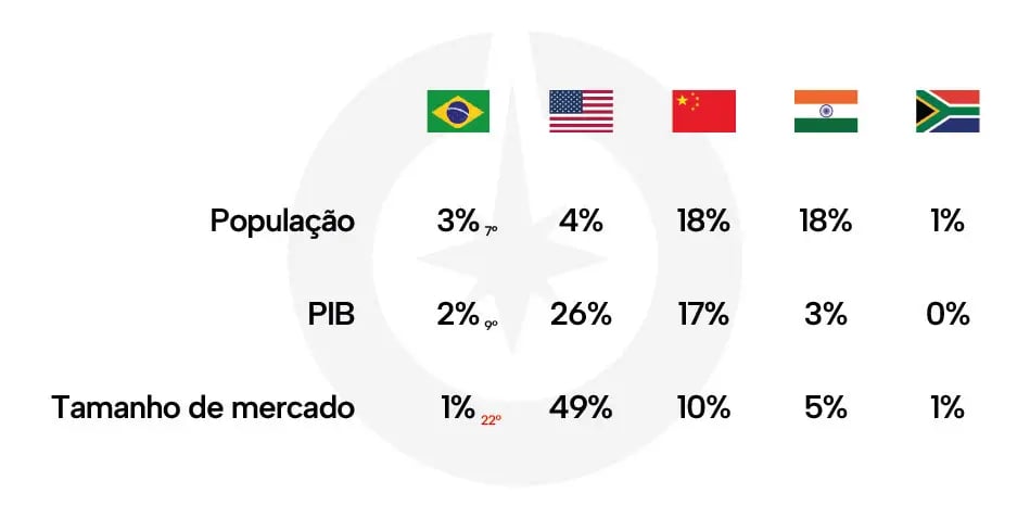 O Brasil representa só 1% do mercado global de capitais e 2% do PIB mundial, mas carrega riscos concentrados: instabilidade política, mudanças tributárias abruptas e ciclos econômicos ao sabor de Brasília.