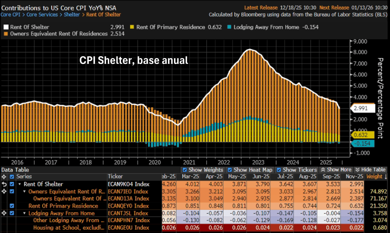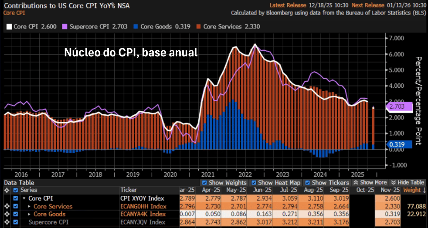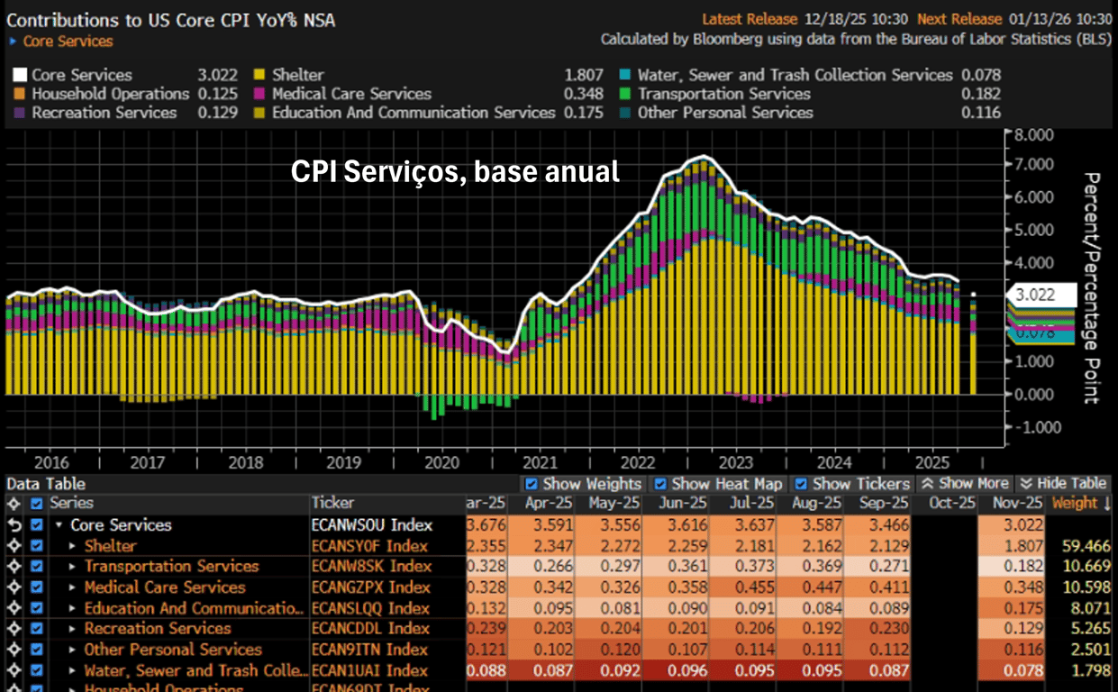 Contudo, o núcleo ainda se encontra em +2,6%, acima da meta de +2,0%. Assim, é preciso a continuidade desse processo de arrefecimento, especialmente nos preços de Shelter.