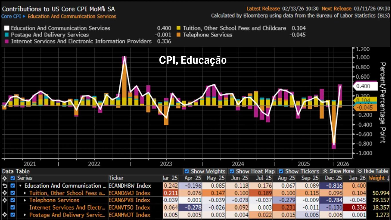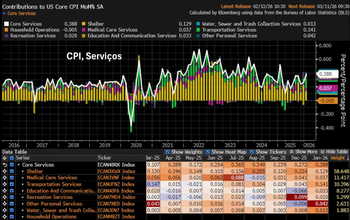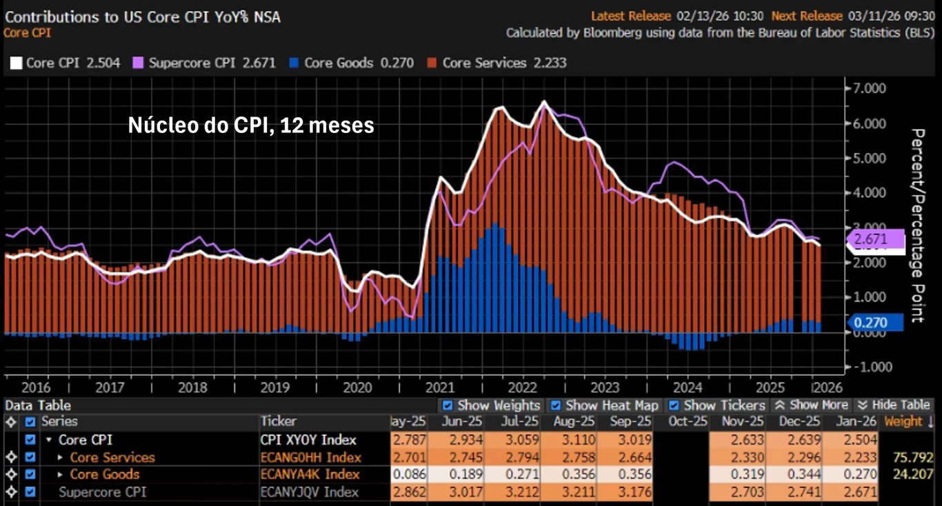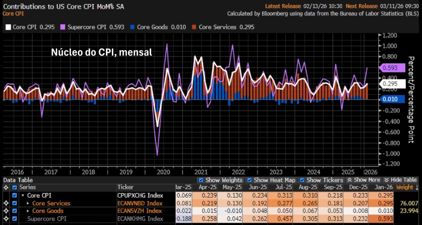 - Núcleo do CPI mensal de jan/26: +0,30%