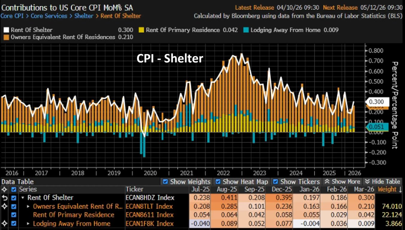 Apesar de ainda não termos os dados do Zillow Rent de março, temos observado uma trajetória cada vez mais benigna nos últimos meses. Assim, mesmo com a pressão de março em Shelter, a perspectiva é de desaceleração nos dados.
