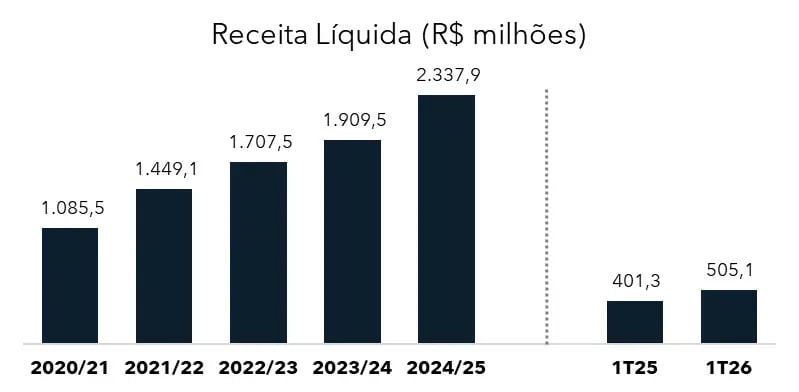 Ainda assim, a receita líquida da Jalles Machado apresentou um crescimento de 26% no 1T25, em relação ao mesmo período do ano anterior, alcançando R$ 505 milhões.