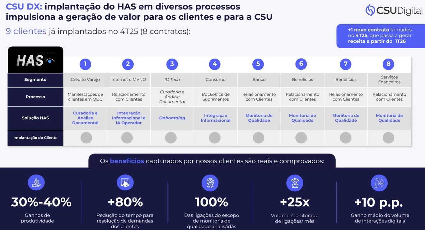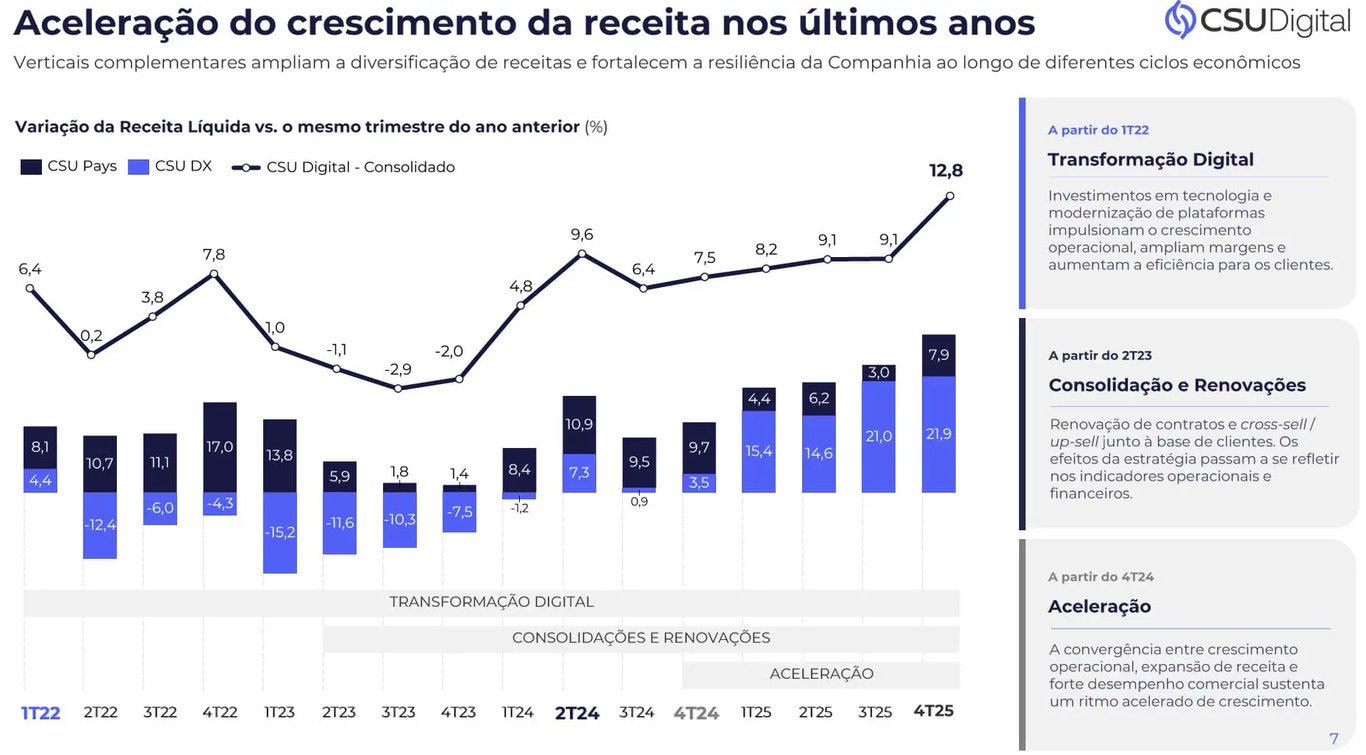 Na divisão CSU Pays, a companhia ainda oferece soluções de processamento de pagamentos via Pix e criptomoedas, emissão e gestão de cartões, prevenção de fraudes e serviços de back-office.