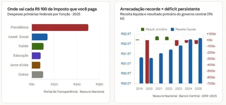 O ponto central não é o tamanho do gasto, mas a sua rigidez. Quando a maior parte do orçamento já está comprometida e continua crescendo de forma automática, o aumento de arrecadação deixa de ser suficiente. O desequilíbrio não desaparece — ele se acumula, o que leva diretamente ao aumento da dívida pública.