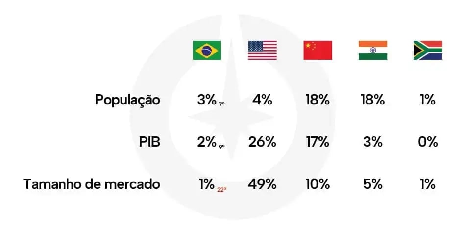 - Mercados que crescem em ciclos diferentes do Brasil.
