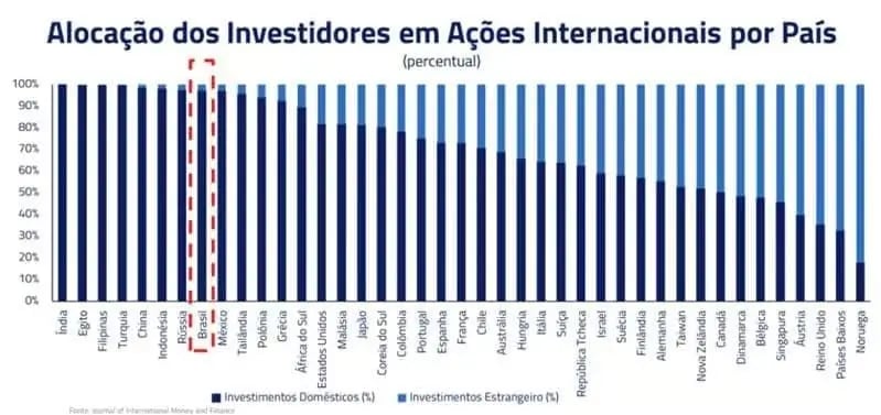 O Brasil representa apenas 1% do tamanho do mercado global. Ainda assim, o investidor brasileiro mantém praticamente tudo aqui dentro.