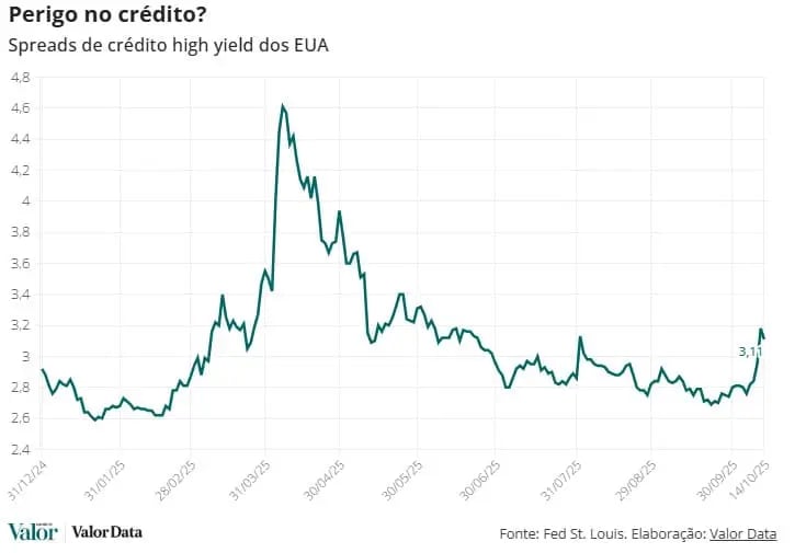 Os motivos para essas altas dos spreads dos créditos high yields (empresas menos seguras) envolvem a falência do financiador de automóveis Tricolor Holdings e do fornecedor de autopeças First Brands Group, que elevaram o temor dos investidores quanto a possíveis novos episódios de turbulência no mercado de crédito.