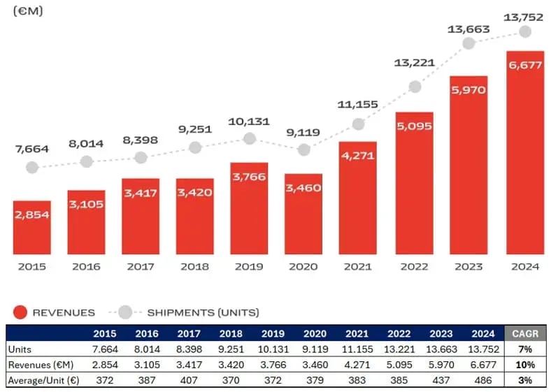 Isso pode soar contraditório para uma empresa que se vende como escassa e exclusiva. Em teoria, esperaríamos ver o contrário: preços crescendo muito mais rápido do que unidades. Mas os dados mostram que não foi exatamente assim.