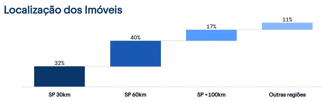 Um dos fundos imobiliários da nossa carteira recomendada, o BTLG11, possui 33 imóveis e mais de 1,3 milhão de m² de ABL. Cerca de 90% dos ativos do fundo estão no estado de SP, sendo 32% no Raio 30 e 40% no Raio 60.