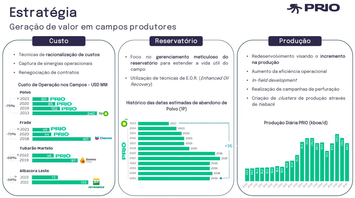 Caso o cenário volte a ser mais propício para aquisições, a PRIO poderá voltar a fazer o que faz de melhor: adquirir campos maduros, reduzir o custo de produção, capturar sinergias e aumentar a vida útil dos ativos.