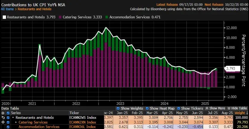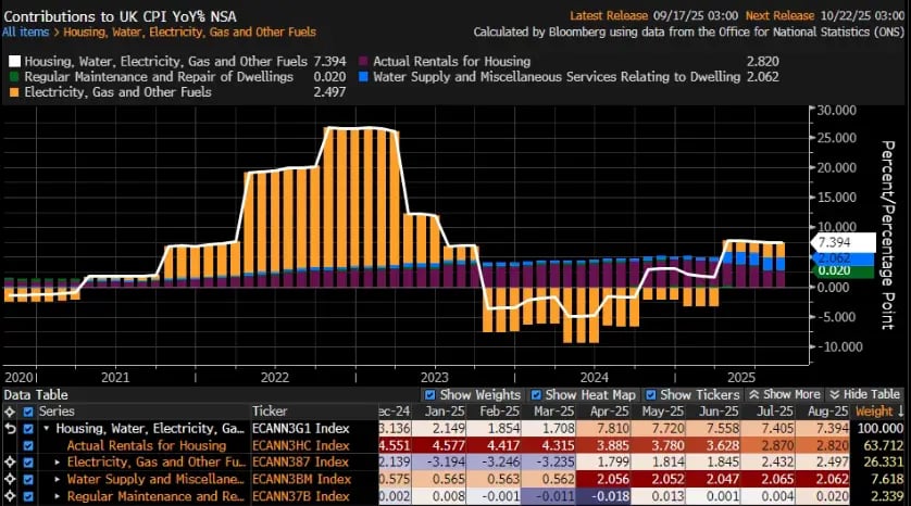 Pressões em habitação e alimentos mantêm a inflação elevada; expectativa é de manutenção da política monetária pelo Banco da Inglaterra até dezembro.