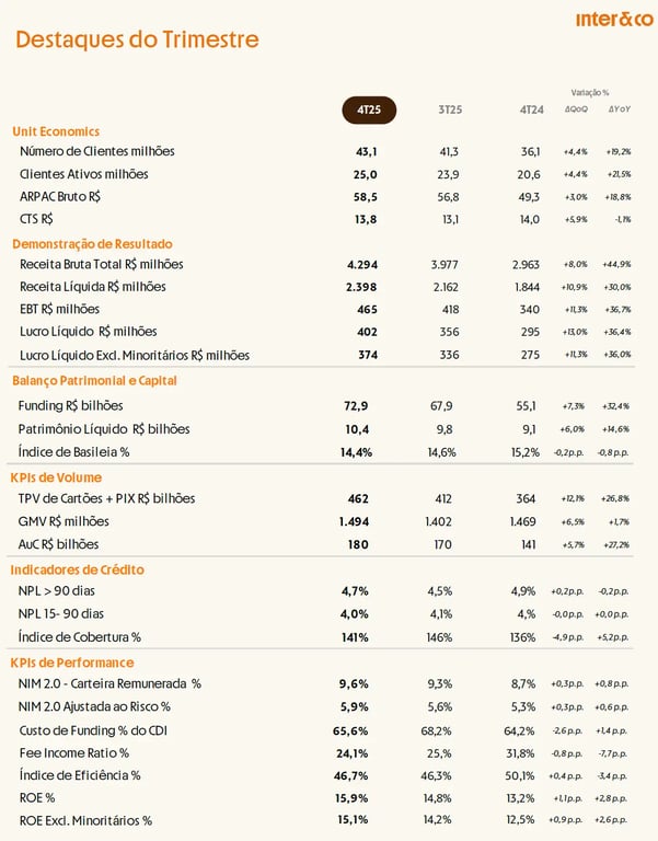 Outros destaques do 4T25 do Inter