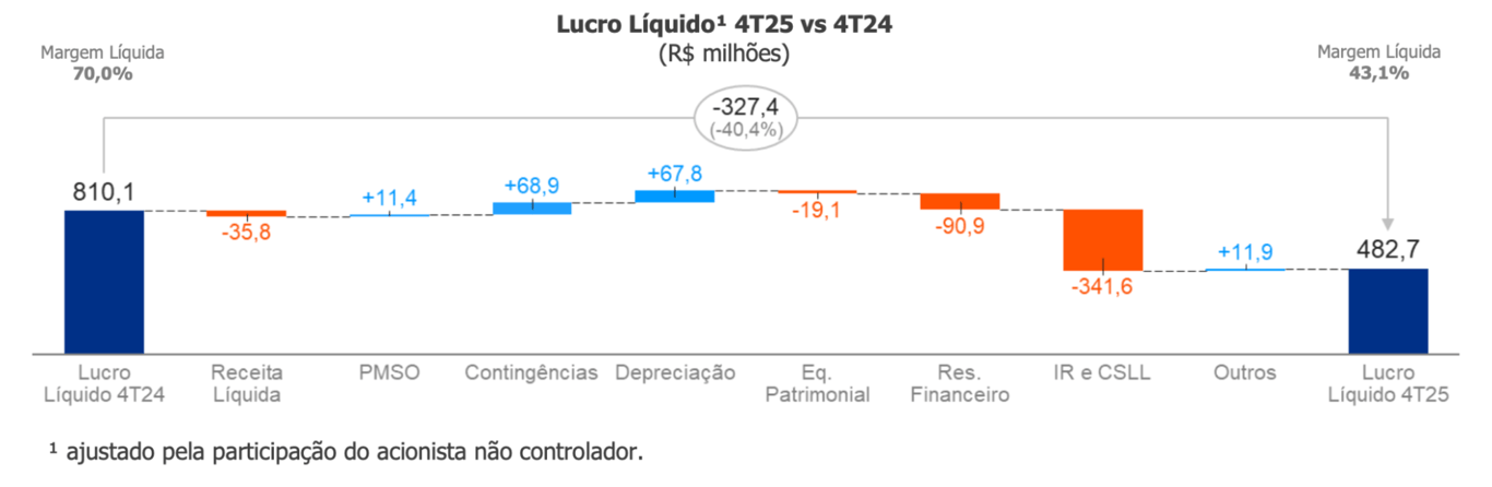 Com perspectivas de seguir investindo para compensar a “perda” do RBSE, em 2028, e elevando sua alavancagem até níveis próximos a 4x (e, por consequência, pagando mais juros de dívida), a tendência é que o lucro líquido da companhia siga pressionado daqui para frente.