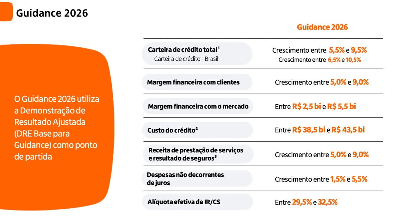 Ontem, o Itaú também trouxe seu guidance de 2026 para as mesmas linhas do ano passado.