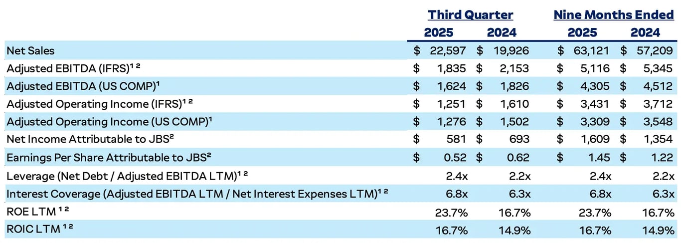 JBS (JBSS32) tem lucro -16% menor no 3T25
