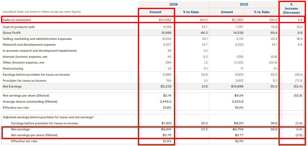 Resultados da Johnson & Johnson no 1T26