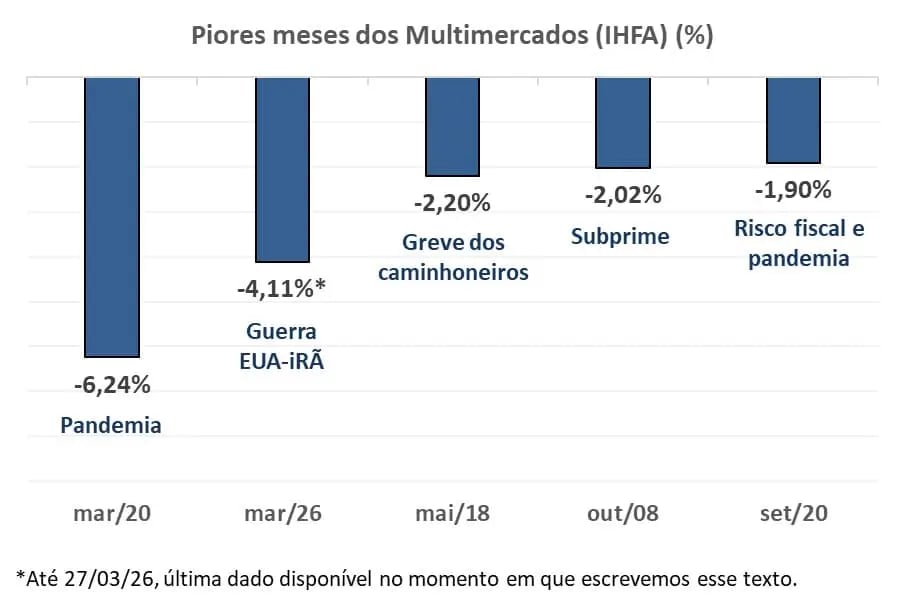 Continuamos acreditando no papel dos multimercados na carteira e, a nosso ver, março deixou uma lição útil: ter liberdade para mudar de rota é importante. Saber usá-la bem é o que realmente faz diferença.