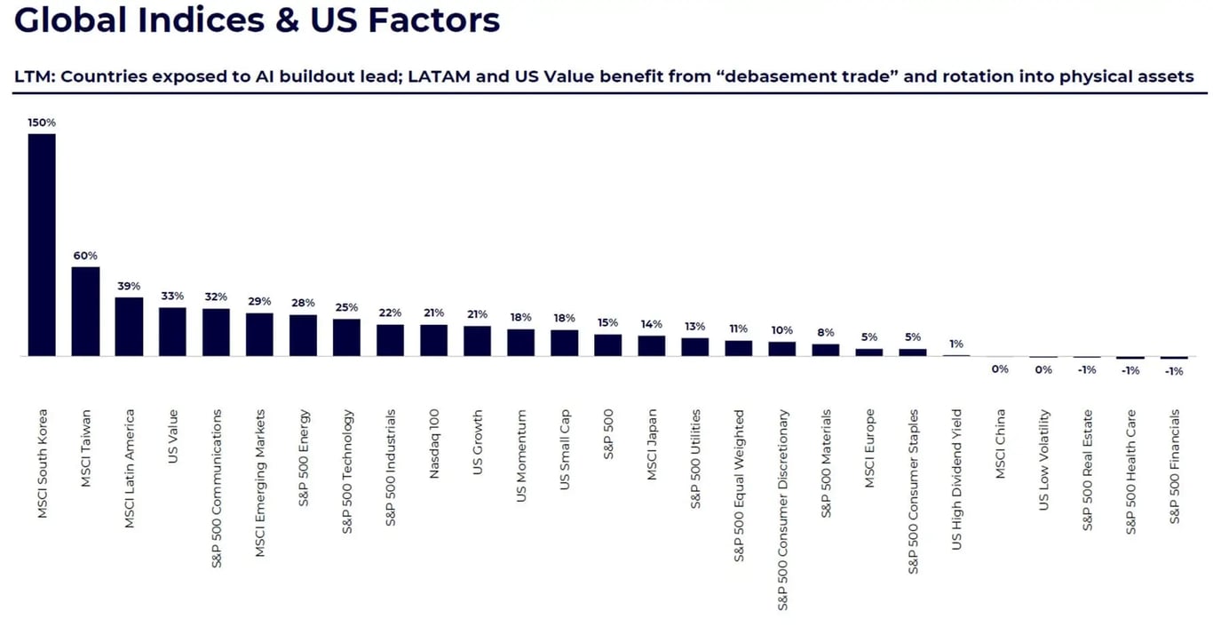 Estamos observando um movimento relevante de reprecificação nos mercados globais, com destaque para o ouro e a Bolsa americana. Ao mesmo tempo, os desafios enfrentados pelos multimercados e as surpresas vindas da Coreia do Sul voltaram a chamar a atenção dos investidores, reforçando como diferentes classes de ativos podem reagir de forma inesperada em cenários de maior incerteza.
