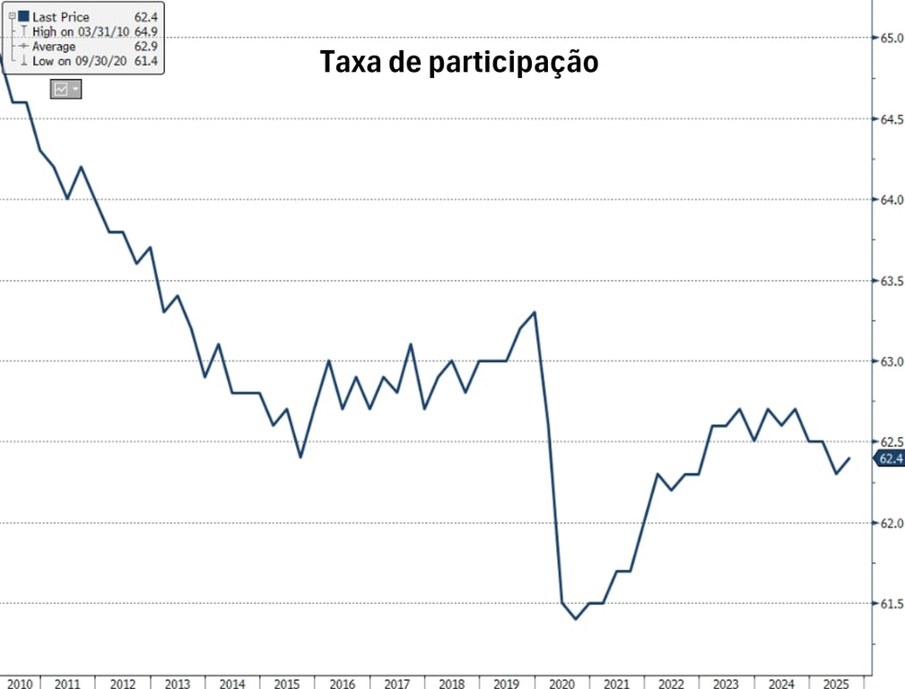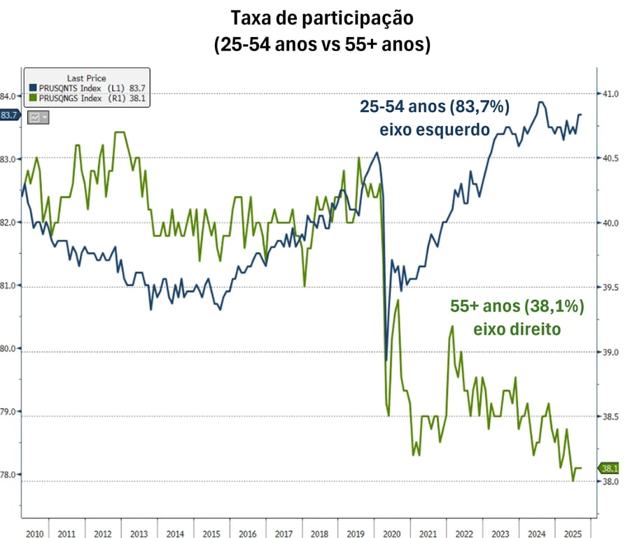Com a mudança de comportamento da população de idade mais avançada, com muitos desistindo de procurar emprego, devemos seguir observando uma taxa de participação geral mais baixa que no pré-pandemia.