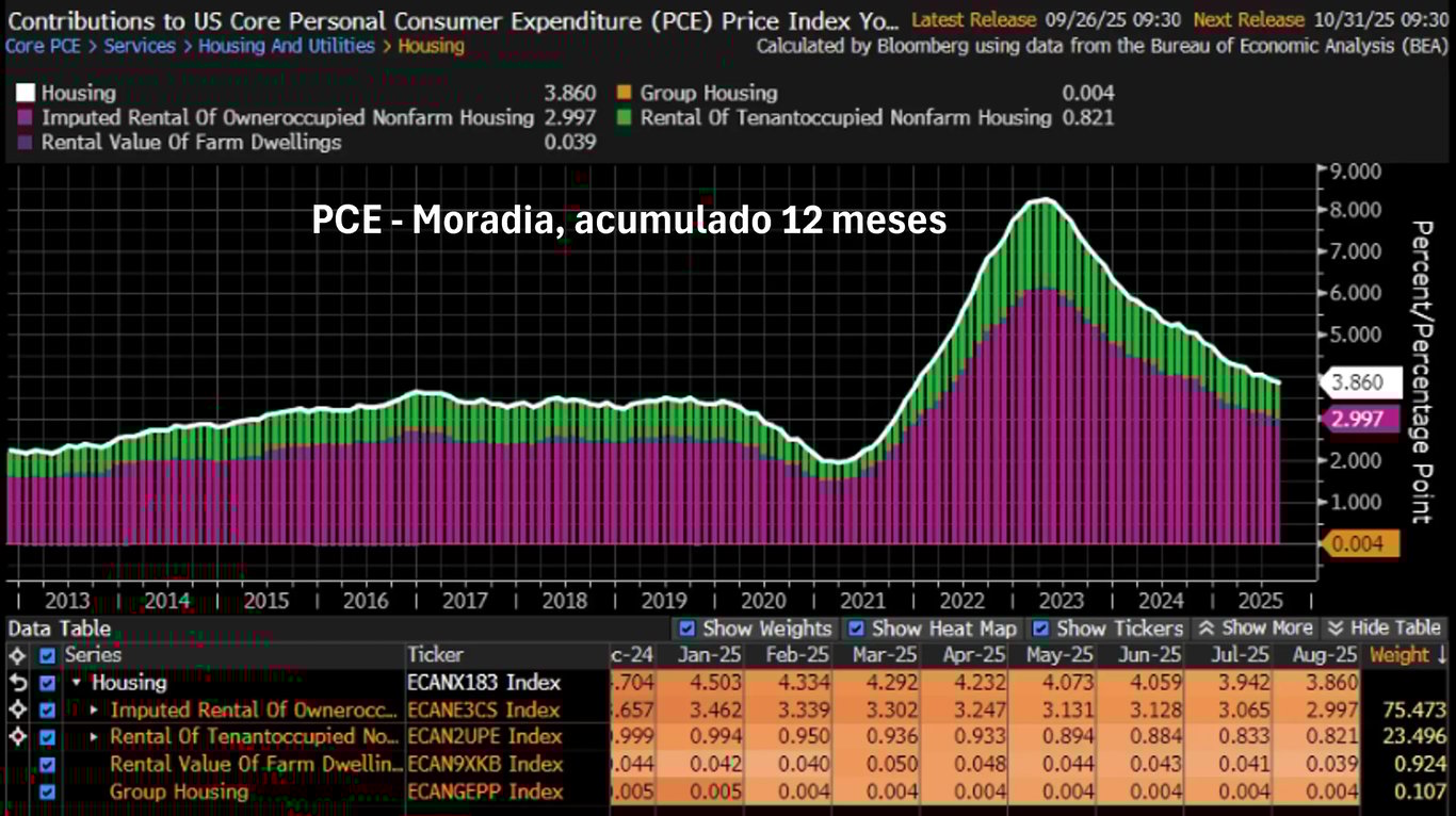 O que chamou a atenção nesse PCE foi justamente a aceleração da inflação de moradia, que passou de 0,27% para 0,36%, o maior patamar desde março (0,39%)