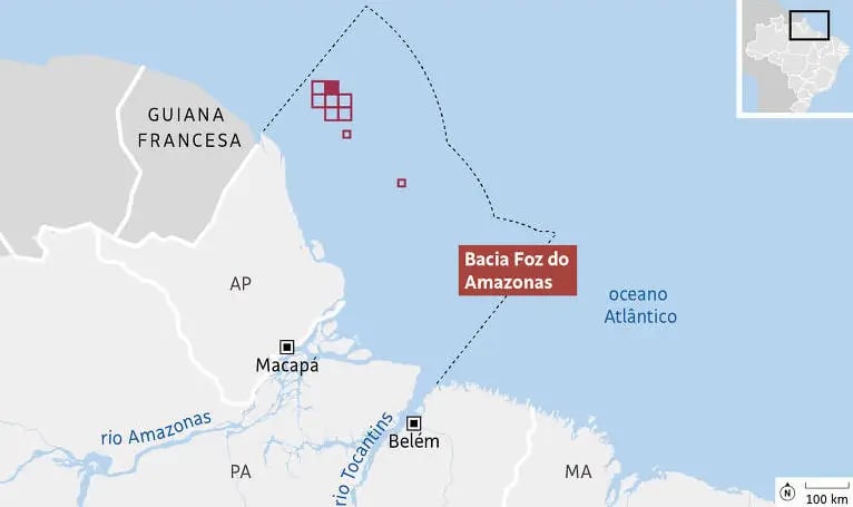 A verdade é que a Margem Equatorial (ou Margem Equatorial Atlântica) vai além do território brasileiro, também passando pela Guiana Francesa, Suriname e Guiana.
