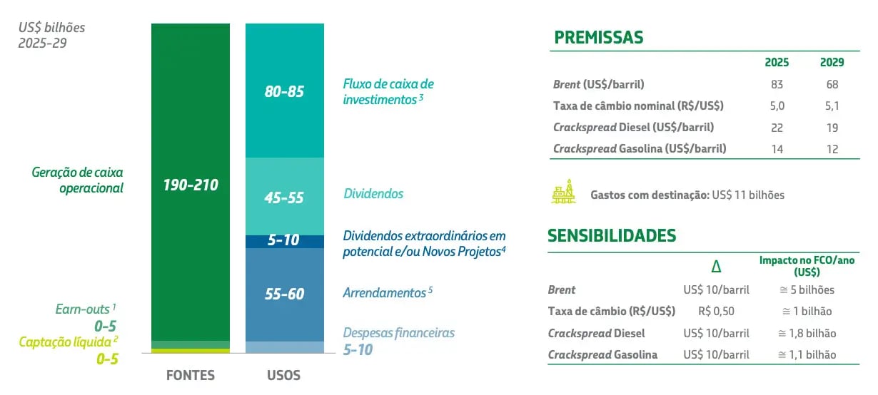 Ao todo, a Petrobras planeja perfurar 15 poços da Margem Equatorial, com um investimento inicial previsto de US$ 3 bilhões e que já está contemplado em seu plano estratégico 2025-29 — sem interferir em suas distribuições esperadas de dividendos no período.