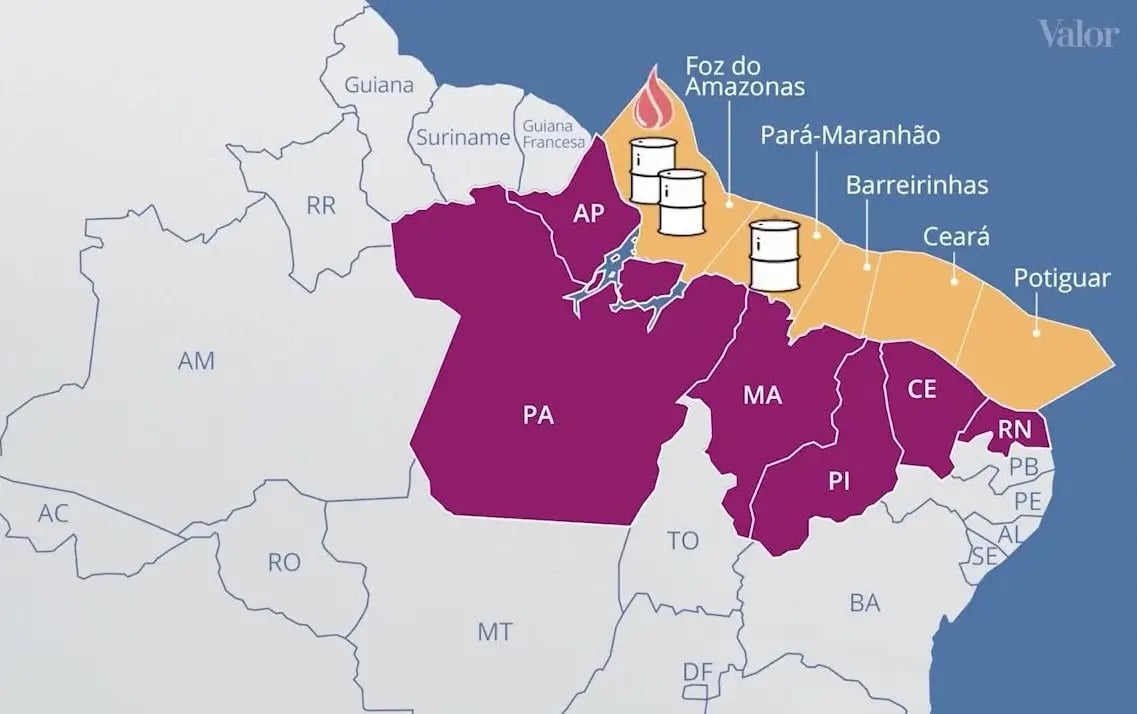 Junto a outras quatro bacias (Pará-Maranhão, Barreirinhas, Ceará e Potiguar), que se estendem até o Rio Grande do Norte, a Foz do Amazonas faz parte da Margem Equatorial — ou, melhor, do que podemos chamar de Margem Equatorial Brasileira.