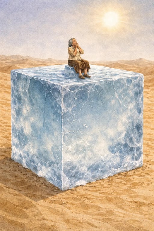 Nem morrer de sede no deserto sentado sobre um cubo de gelo, nem transformar tudo em água e deixá-la evaporar no sol escaldante!