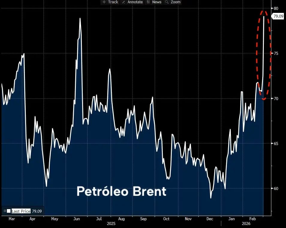 O Brent, referência internacional, já vinha incorporando um prêmio de risco geopolítico e havia fechado a sexta-feira a US$ 72, acima dos US$ 61,registrados no início do ano.