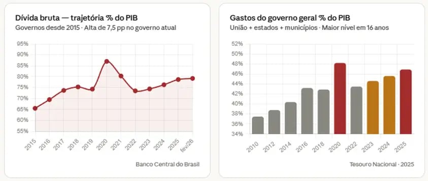 Pelo contrário: o que se observa é um Estado mais caro, mais pesado e com dificuldade crescente de se financiar sem recorrer ao aumento da carga tributária ou à expansão da dívida.