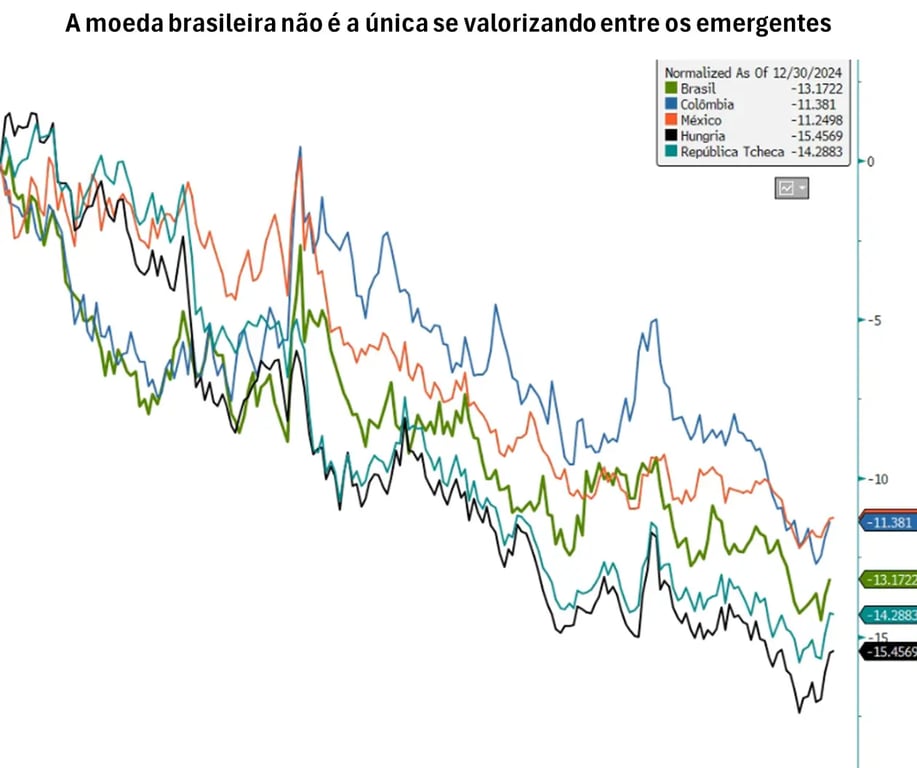 Vale destacar que a moeda brasileira não é a única com boa valorização entre os países emergentes neste ano. Colômbia, México, Hungria, República Tcheca, entre outros, viram suas moedas se valorizando em meio ao enfraquecimento do dólar em relação ao restante do mundo.