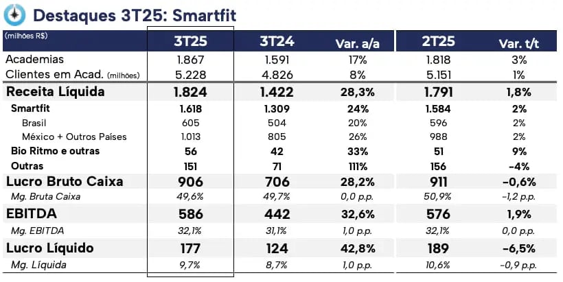 Smart Fit (SMFT3) registra lucro 43% maior no 3T25 com forte expansão da rede. Veja os resultados e entenda por que seguimos recomendando compra