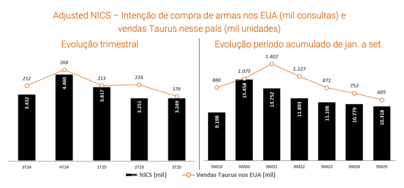 Já as vendas de armas de fogo no Brasil, que chegaram a representar 20% das vendas totais da companhia, foram praticamente paralisadas após a entrada do novo governo em 2023, que endureceu as regras sobre aquisição, registro, posse e porte de armas no país.