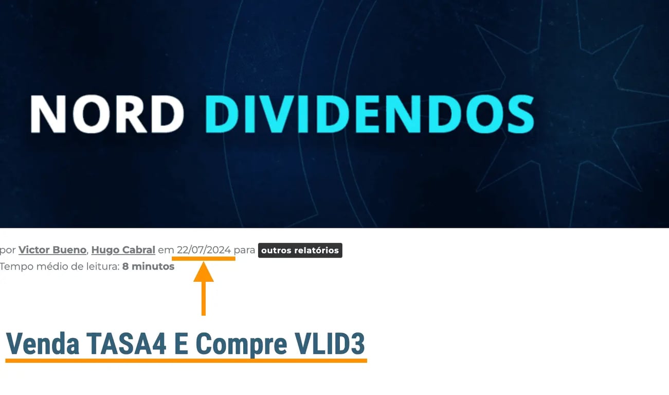 Com resultados negativos e baixa visibilidade futura (incluindo para distribuições de dividendos), decidimos, no dia 22 de julho de 2023, vender TASA4 no Nord Dividendos.