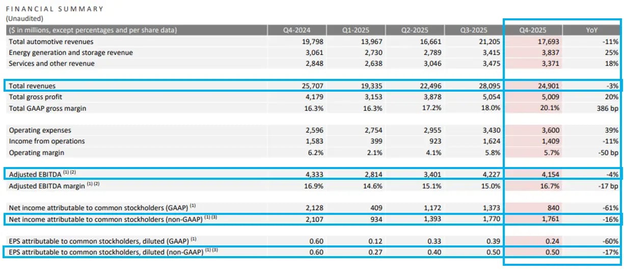 Apesar de um 4T25 melhor que as expectativas e um 2025 fraco, a narrativa de dominar o mundo por meio de carros ou robôs ou qualquer outra coisa segue firme e forte