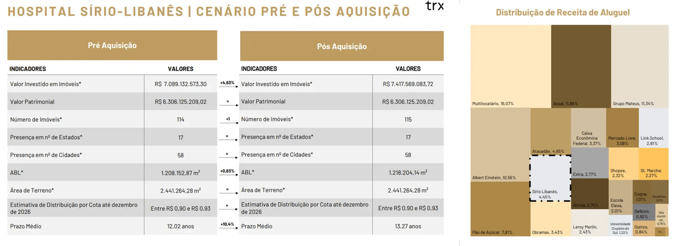 Na minha leitura, a aquisição é positiva para o TRXF11. O Fundo adiciona mais um ativo no segmento hospitalar, trazendo um inquilino com excelente qualidade de crédito e uma das principais redes do país.