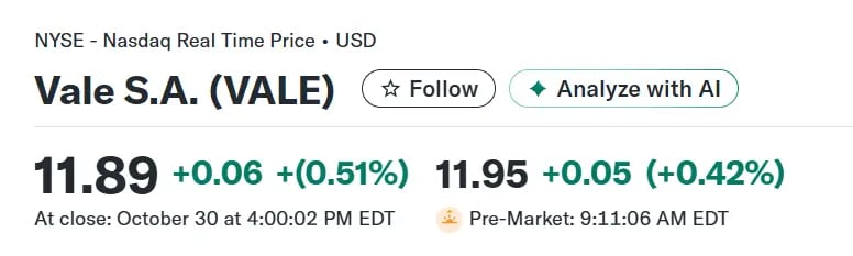 Vale (VALE3): lucro proforma sobe +78% no 3T25. Vale a pena investir?